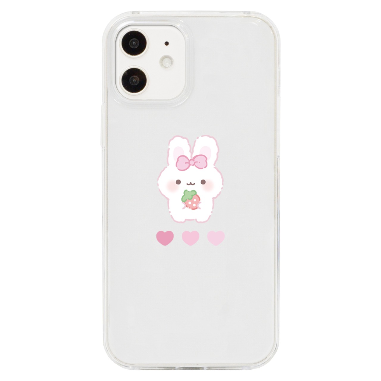 うさぎさんといちごのシンプルでかわいいスマホケース