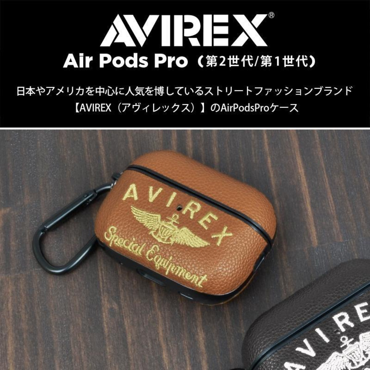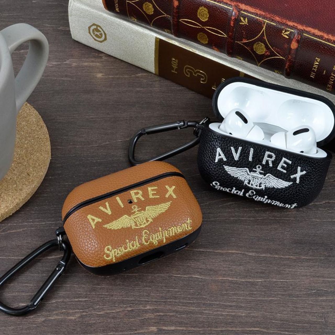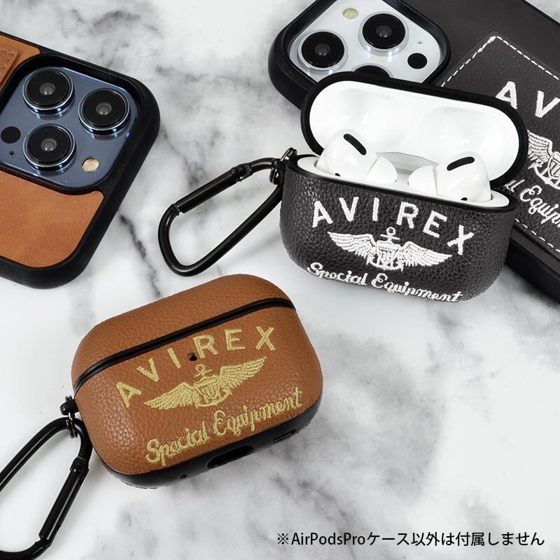 スマホケースメーカーMDCが提供するAVIREX (アヴィレックス) の刺繍ロゴAirPodsProケース。